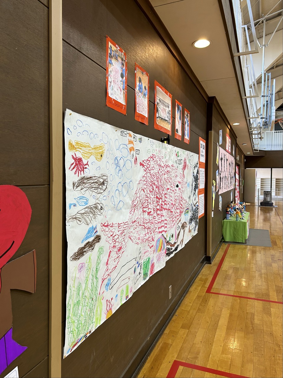 全校児童の学びの成果が詰まった展示会場から、いつもの体育館へと元通り。しかし、そこには、最後まで頑張った高学年の喜びであふれていました。
