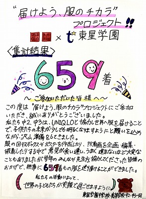 来年の2月に、難民の子どもたちに服を届けた様子が本校に届く予定です。