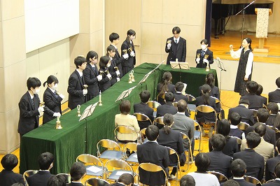 最初に高校2年生音楽選択者によるハンドベル演奏が行われました。