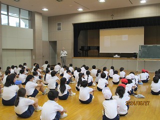 3時間目は、5・6年生のインターネット利用に関する講話がありました。便利なSNSは、児童の生活にもはいりこんできています。正しい知識がないために、個人情報が拡散されたり、お金の要求など、取り返しのつかない事故に巻き込まれてしまう危険があることを動画を通して学びました。また友だちとのチャット等のやりとりで、言葉が足りないために誤解をされてしまう事例も紹介されました。人とのコミュニケーションの基本は対面です。緊急時以外は、顔を見て友だちと関わることの大切さを確認しました。