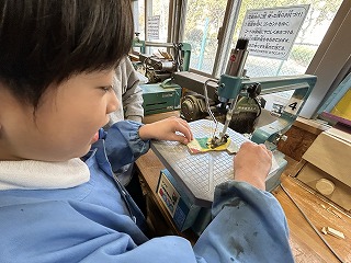 仮入部のときには、電動糸のこぎりを使いマグネットを作りました。