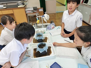 4年生は、理科の授業で、雨水の流れについて勉強しました。