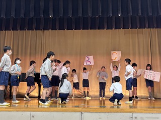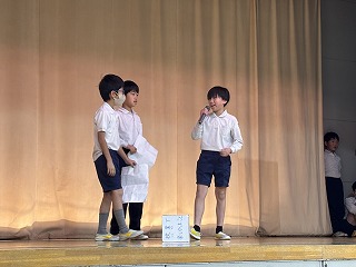 2年生の出し物では、九九などで6年生に対決を挑む「6年生に挑戦!」が盛り上がりました。