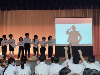 歌のプレゼントでは、手話を取り入れて元気に歌いました。