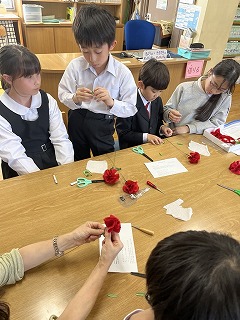 みんな集中して取り組み、1回の制作時間ですてきなカーネーションが完成しました。