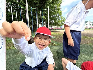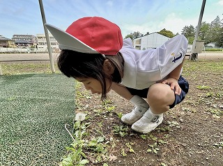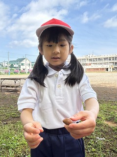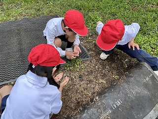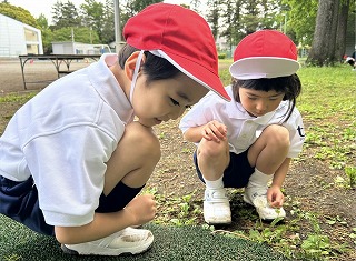 見つけたものをじっくりと観察したり、やさしく触ったりしていました。